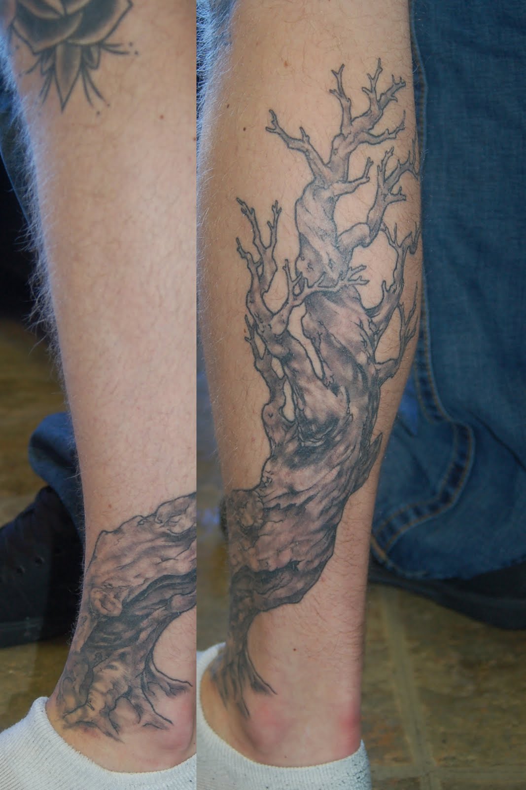 what a black and grey tattoo looks like healed vs fresh.